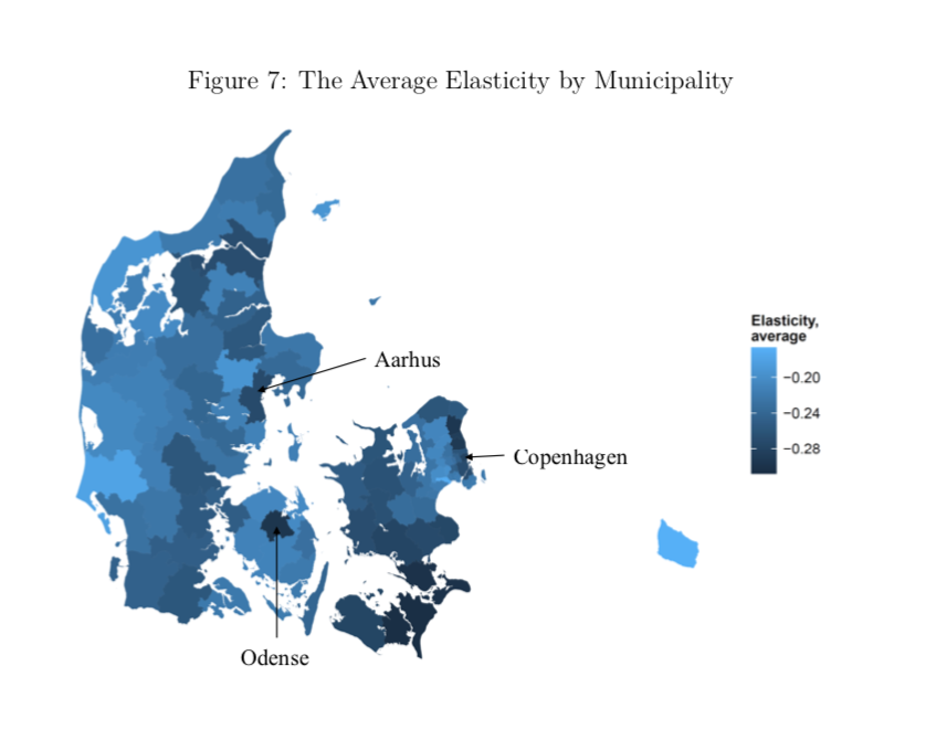 In Denmark, one study shows that the price elasticity varies a lot across the country and in particular reacts to the distance people need to travel to work and transportation alternatives they face.