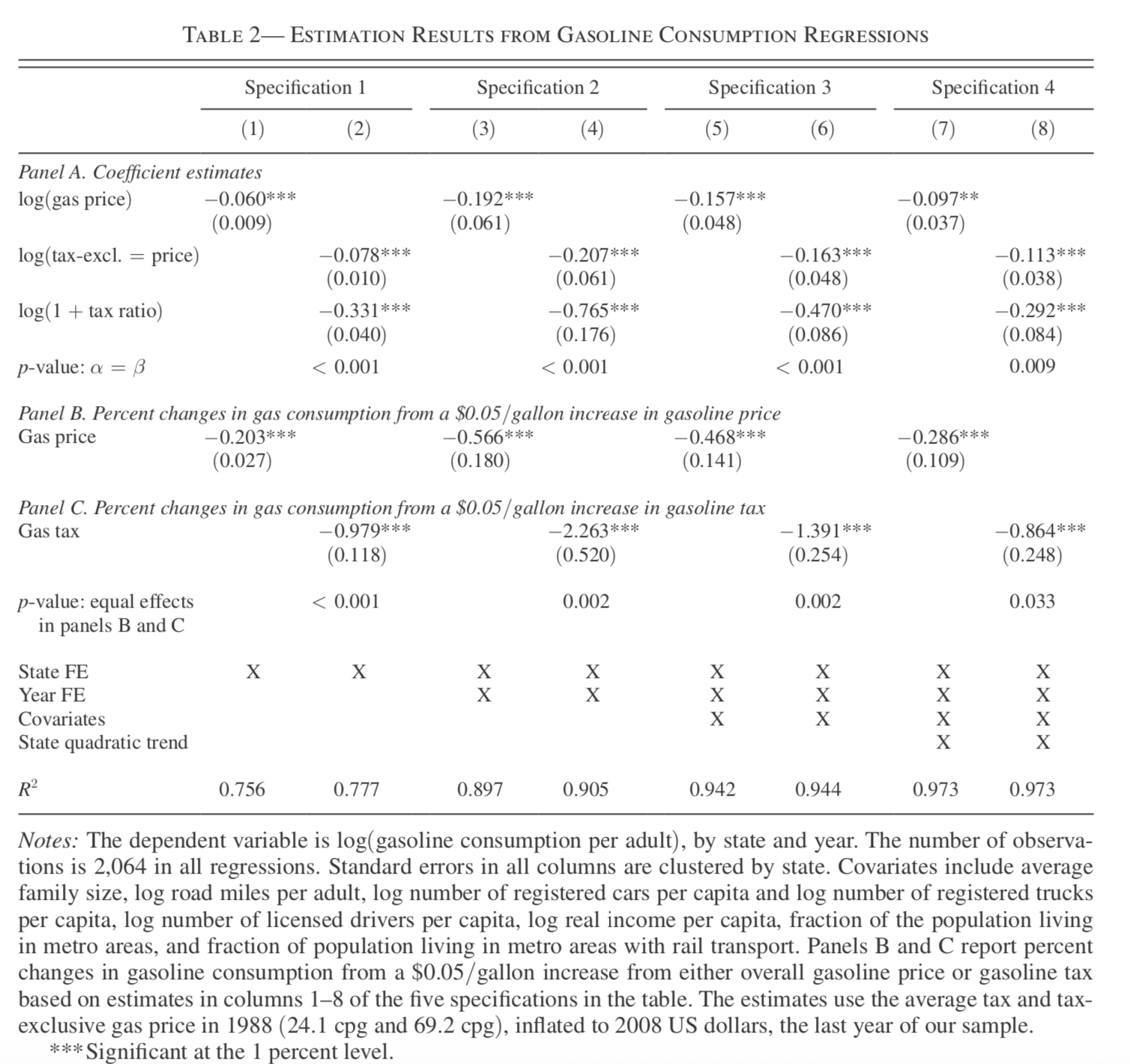 To infer the price elasticity, a challenge is to find an experiment where the price is varied exogenously while other factors are kept constant. Taxation is one of the key source of variation exploited. Other examples include using supply shocks which lead to a change in the price not driven by demand. The log-log regression framework above can be used to estimate the price elasticity.